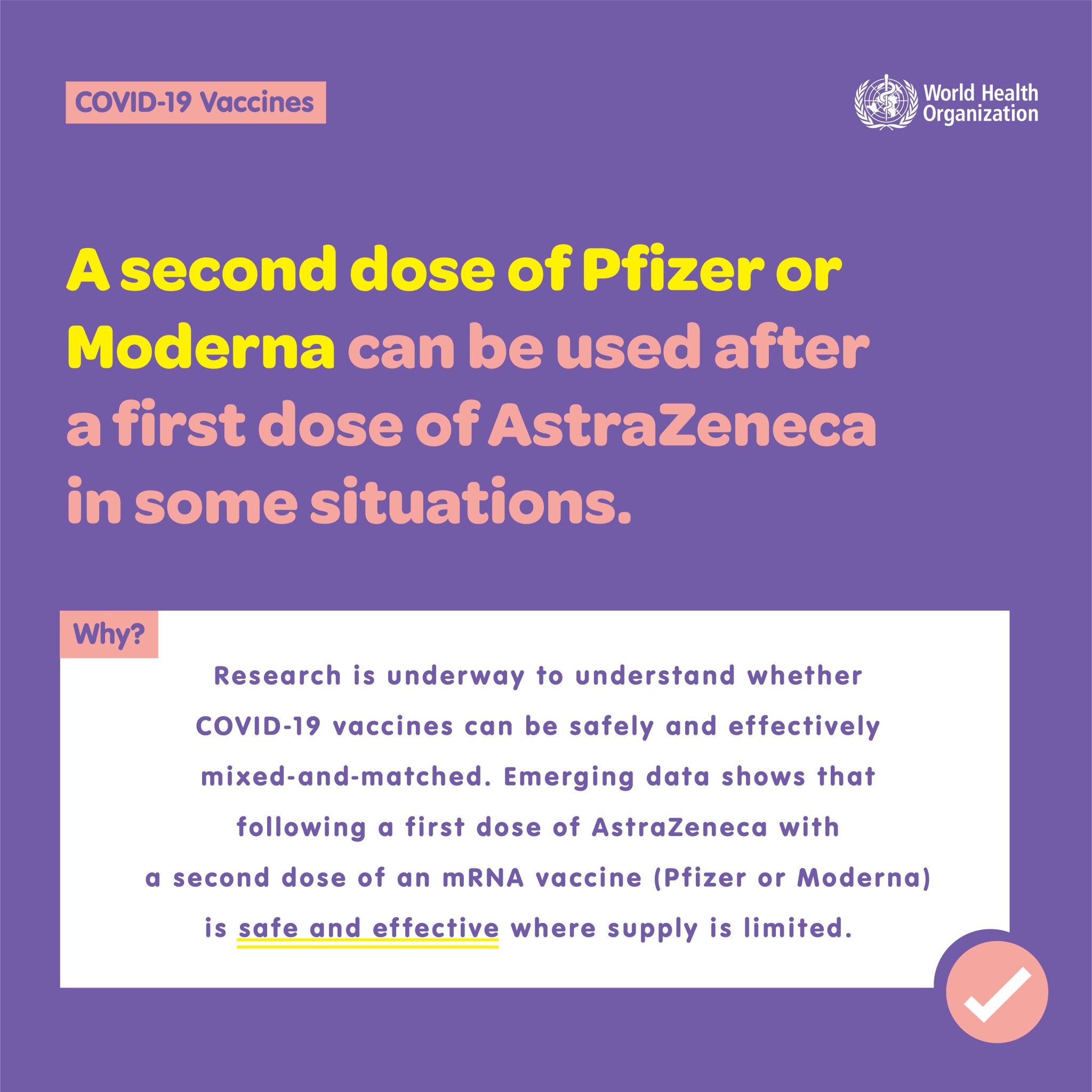 World Health Organization Who On Twitter A Second Dose Of Pfizer Or Moderna Can Be Used After A First Dose Of Astrazeneca In Some Situations Covid19